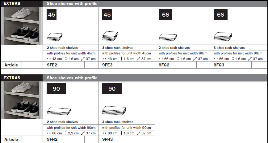 43cm Shelves & Rails - Suitable for Wardrobe Unit 45cm