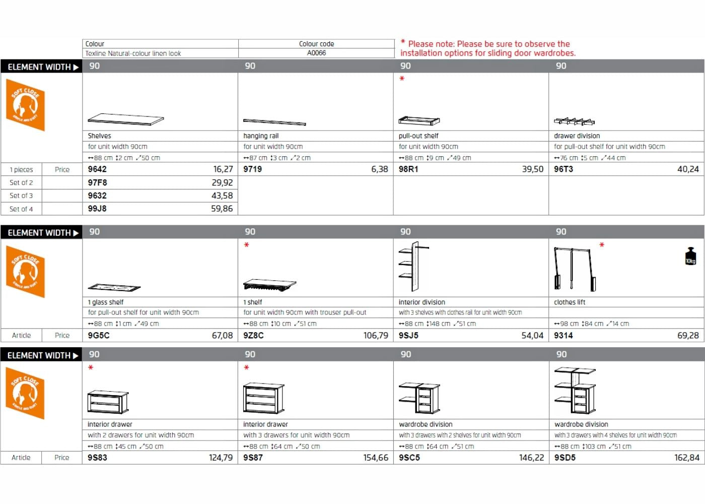 88cm Shelf - Suitable for Wardrobe Unit 90cm