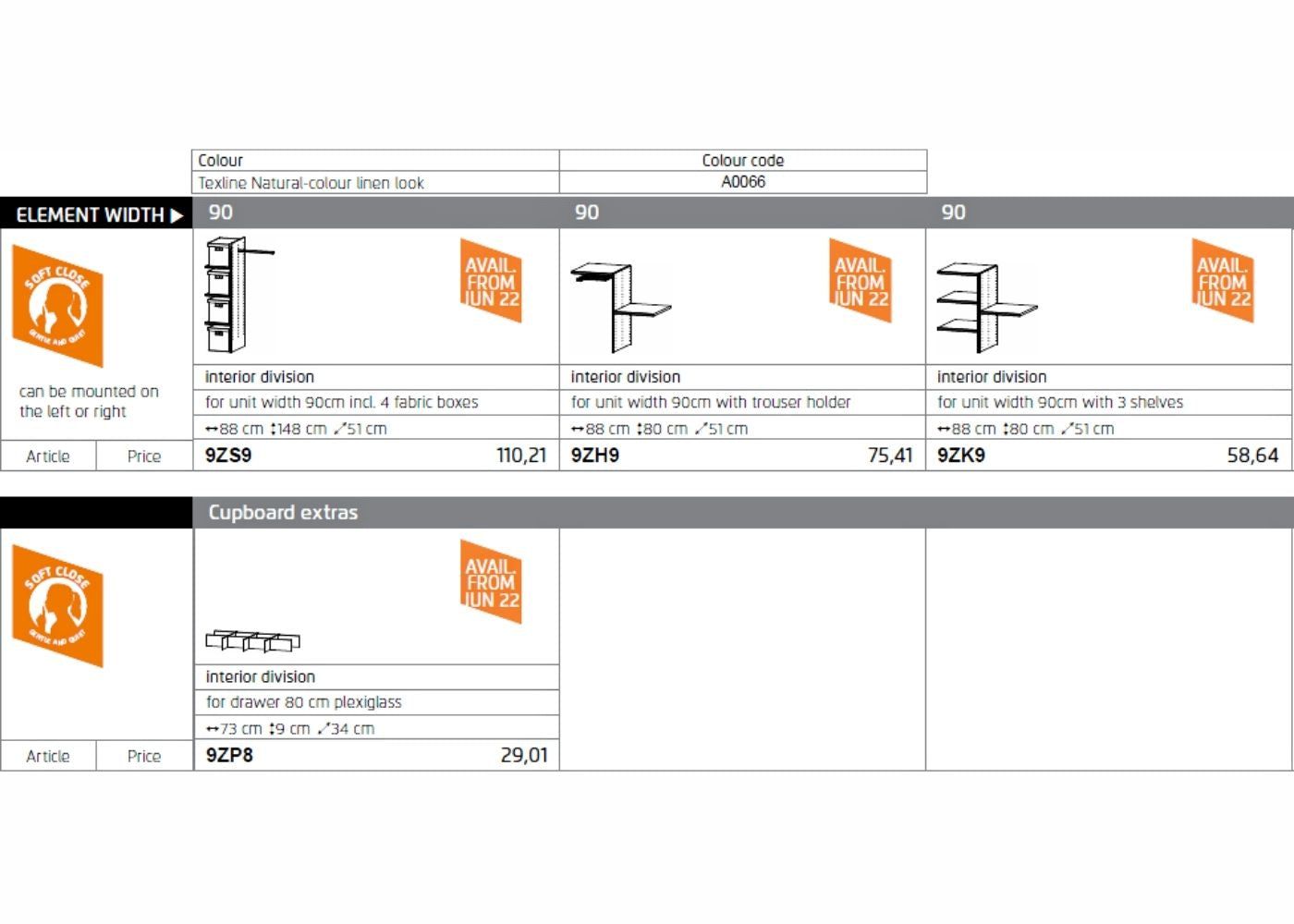 Interior Divider w/ 3 Shelves - Suitable for Wardrobe Unit 90cm