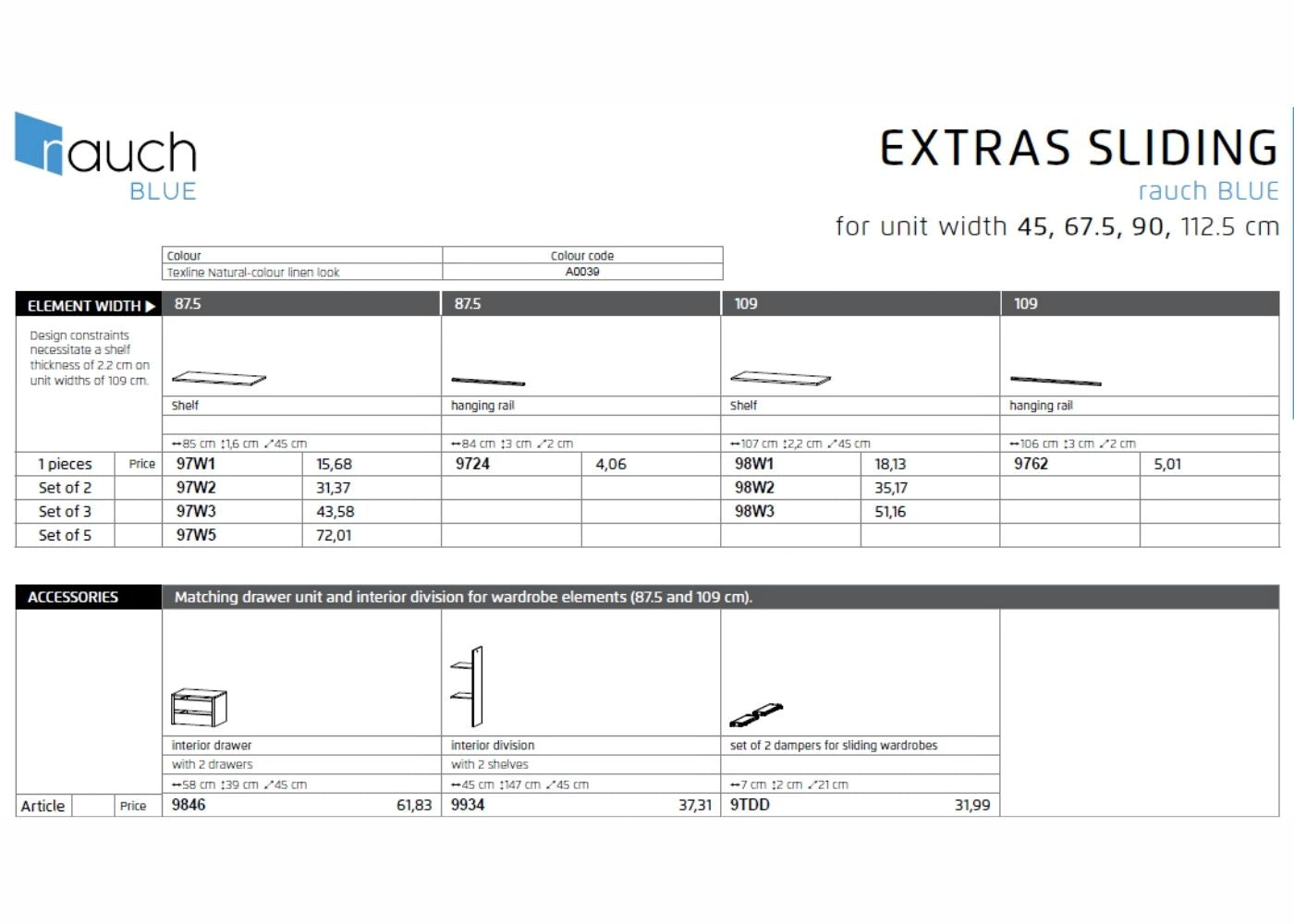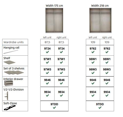 Interior Divider w/ 2 Shelves - Suitable for Wardrobe Units 87.5cm & 109cm