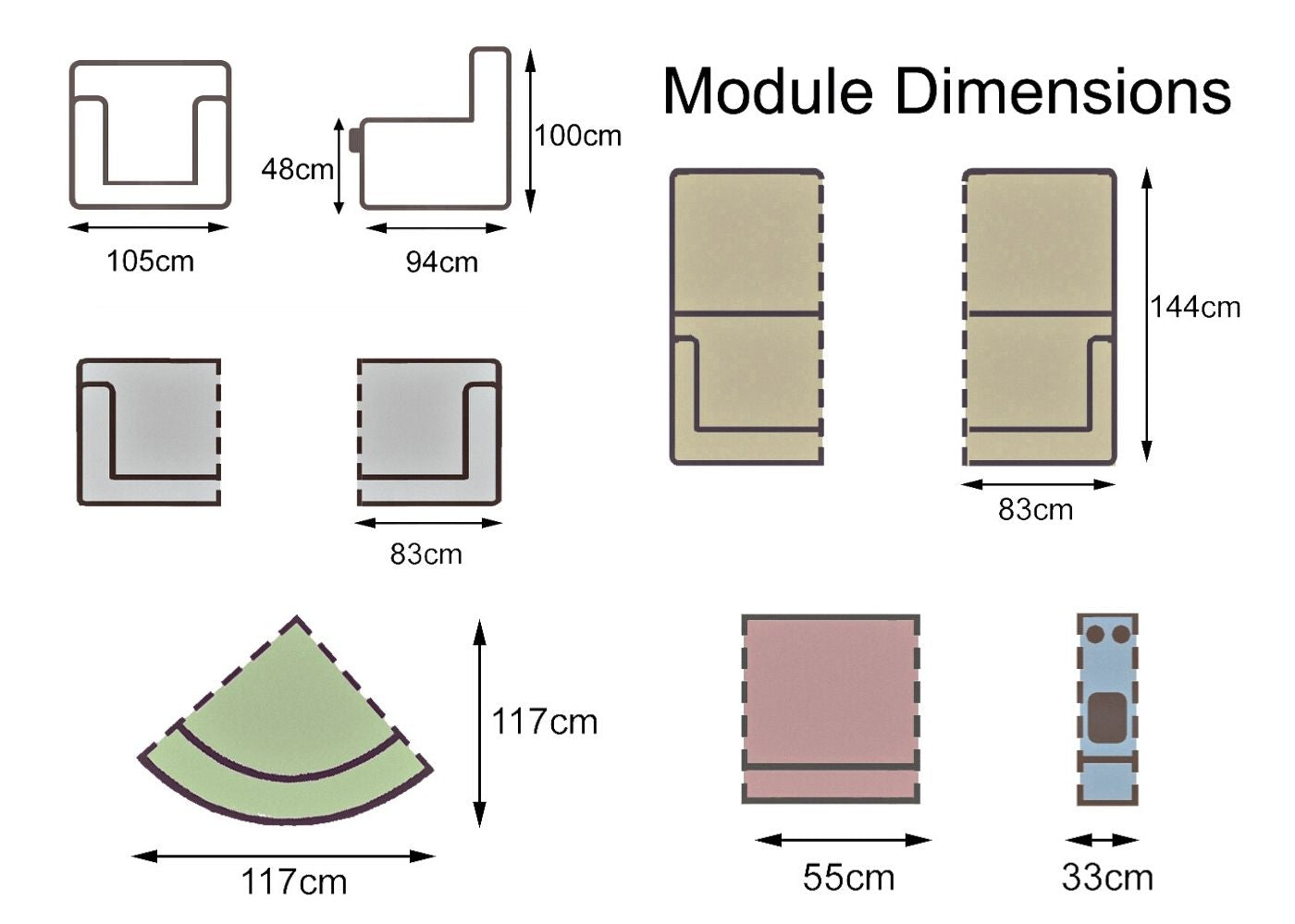 2-Corner-1 (Includes - 1x Corner Piece, 1x Element, and Left & Right Recliners)
